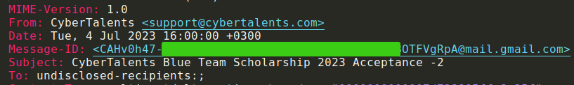 - Message-ID - a unique identifier of the particular email assigned by the senders mail server.