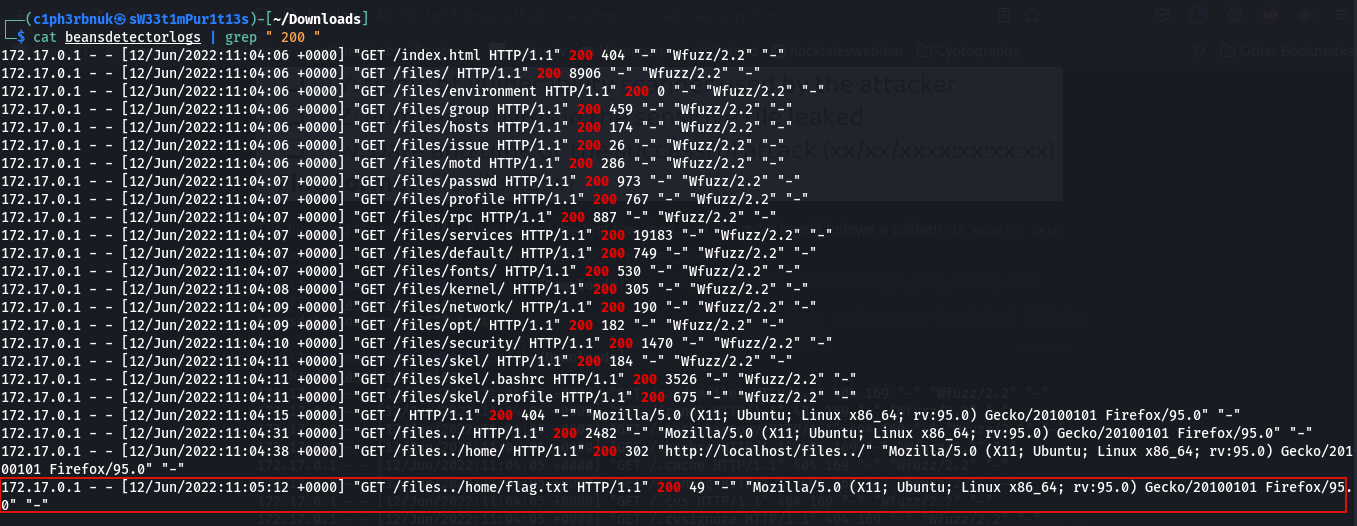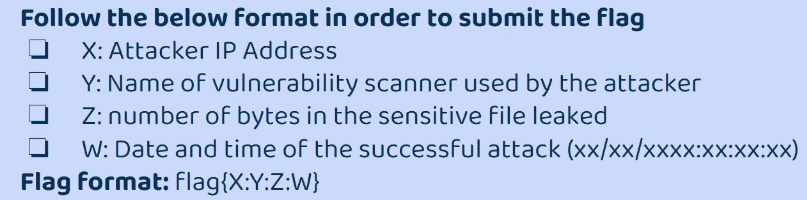 The attacker was able to discover some few files withing the web application and the last record below shows us an interesting file that was exposed. Use the flag format above to construct the answer!