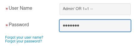The attacker could submit the string Admin' OR 1=1 -- as their username and any password.