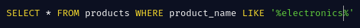Suppose an online shopping application performs the query below to filter displayed products based on user’s input in the search bar (say electronics).