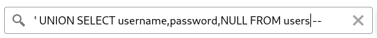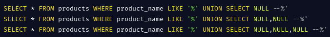 For our example, the attacker will encounter no errors therefore finding out all the 3 columns can take a string value. If the attacker knows that there exists a table called users which contain columns username and password, they can inject the payload 'UNION SELECT username, password, NULL FROM TABLE users-- and all users credentials would be leaked and displayed together with the electronics products.